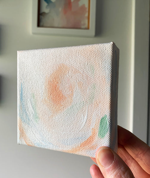 I like working with this size of canvas because there's a challenge to giving depth to something so small through color and texture. These small canvases are perfect to hang as part of a gallery wall or sit on a favorite shelf. They're signed and varnished for protection.
