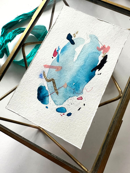 This is a framed, original acrylic painting on watercolor paper with a deckled edge. I've also added some small details in pencil and oil pastel, as well as just a touch of gold leaf. This frame is approximately 5x7", so it gives a little extra glass space in comparison to the 4x6" frames. It's still made to stand on a table or shelf, and is signed and titled as shown.