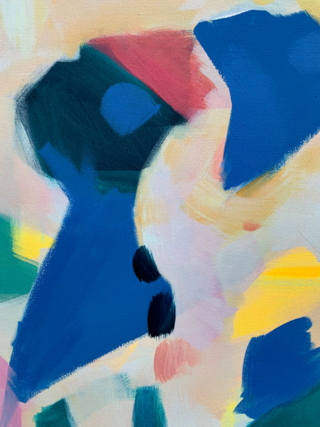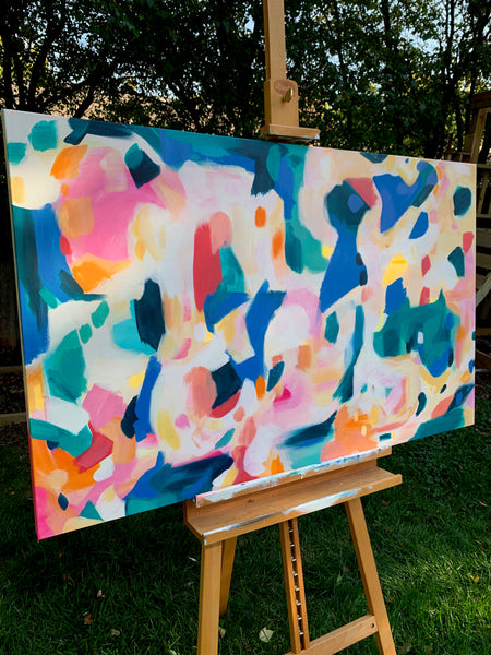 This is a large, 30x48"' acrylic piece on canvas with deep sides. The work is varnished for protection in a light gloss finish.