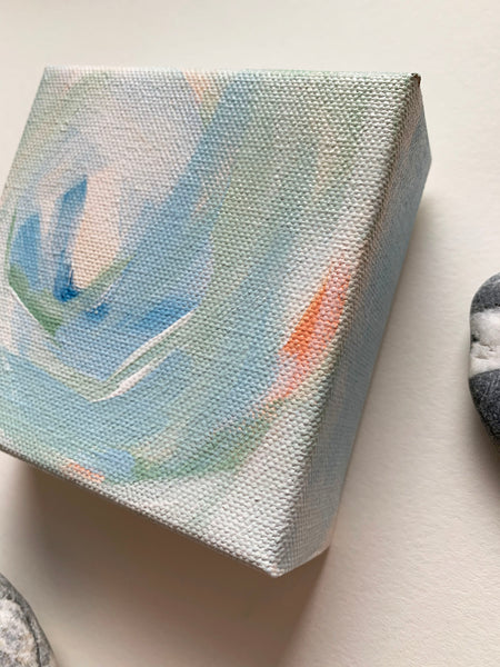 I like working with this size of canvas because there's a challenge to giving depth to something so small through color and texture. These small canvases are perfect to hang as part of a gallery wall or sit on a favorite shelf. They're signed and varnished for protection.
