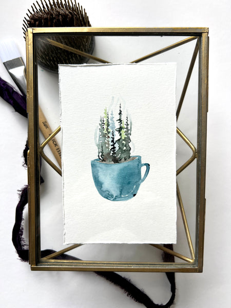 I love a forest mug and this one just crept in while I was busy painting winter ornaments. It seems like the perfect season for pines and warm mugs anyway.
